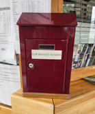 Déposer un courrier dans la boîte aux lettres posée sur le comptoir d'accueil du centre nautique